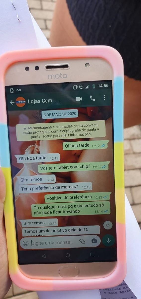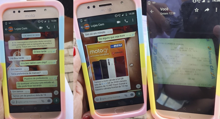 A mulher contou que teve o acesso ao número de celular da golpista através de um grupo de classificados no Facebook. Neste grupo na rede social, a vítima perguntava se alguém saberia informar o número de telefone das Lojas Cem de Ourinhos, pois queria comprar dois tablets e um celular, que seriam pagos pelo seu padrinho. Então uma pessoa lhe passou o número: (14) 99635-4920, que seria da golpista se passando por uma vendedora da loja, que prontamente a atendeu, solicitando o CPF da vítima e começou a passar informações e oferecer os produtos.