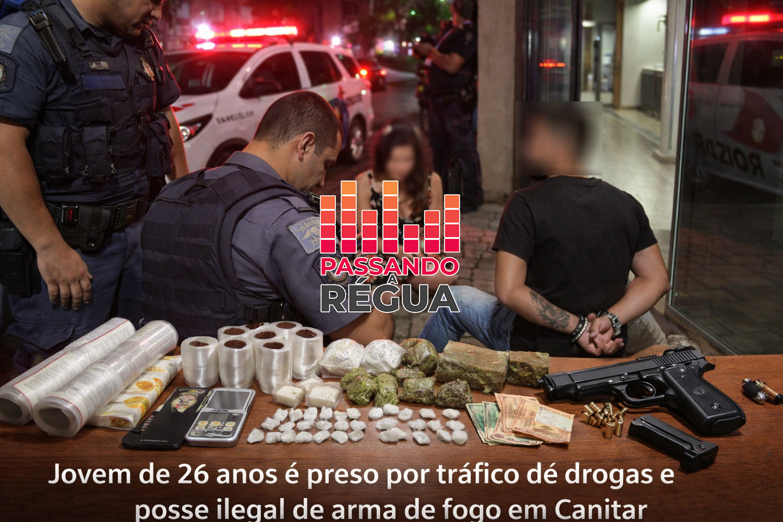 Um jovem de 26 anos foi preso em flagrante na noite deste sábado, 18, acusado de tráfico de drogas e posse ilegal de arma de fogo de uso restrito, no município de Canitar.