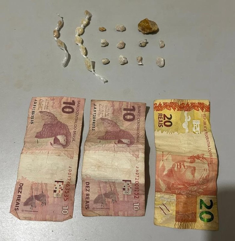 Diante das evidências, o jovem recebeu voz de prisão e teve os direitos constitucionais lidos. Foram utilizadas algemas devido à resistência apresentada e ao risco de fuga. Todo o material apreendido foi encaminhado à delegacia: as 20 pedras de crack — 19 fracionadas e uma inteira — enquanto o dinheiro foi registrado.