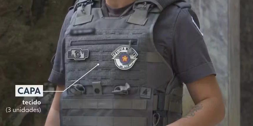 Os coletes balísticos são compostos por uma placa — feita de polietileno e aramida, que segura o impacto de projéteis — e por uma capa de tecido. O equipamento é essencial para a segurança dos mais de 83 mil policiais militares em atividade no estado.