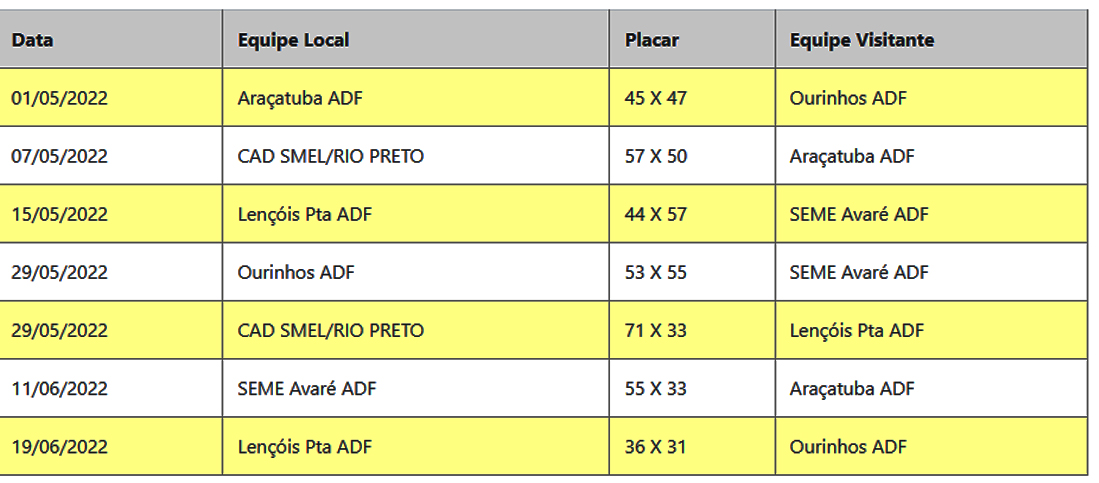 Depois Ourinhos terá dois jogos fora, contra Avaré, dia 21 de agosto e Rio Preto, dia 4 de setembro, ambos às 15h e faz o último jogo em casa, no dia 25 de setembro, às 16h, no Monstrinho. Confira os jogos realizados: