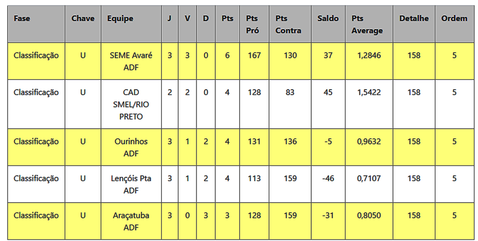 Hoje Ourinhos ocupa a segunda colocação na competição, com duas vitórias e duas derrotas, só atrás de Avaré, única equipe que ainda não perdeu na competição. Confira a classificação: