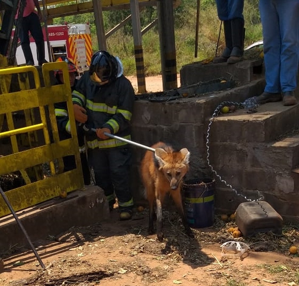 O lobo-guará não apresentou ferimentos, foi resgatado e devolvido à natureza, ainda segundo os bombeiros.