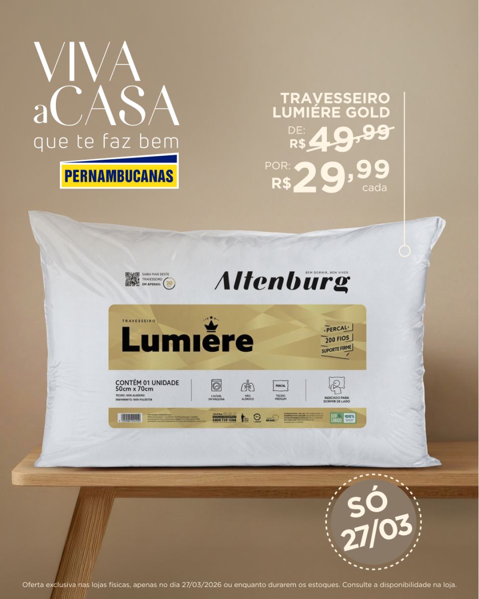 Outros itens também entram na lista de ofertas, como a manta para sofá (1,20 x 1,45 m), que caiu de R$ 59,99 para R$ 39,99, e o travesseiro Lumiere Gold, com desconto de R$ 49,99 para R$ 29,99. Já o edredom casal dupla face está sendo comercializado por R$ 59,99, ante o preço anterior de R$ 69,99.