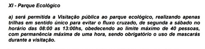 Devido a pandemia do novo coronavírus, o Parque Ecológico Municipal Bióloga Tânia Mara Neto Silva, na cidade de Ourinhos, está funcionando apenas de segunda a sábado, das 8h às 13h, seguindo o último decreto municipal (clique e relembre).