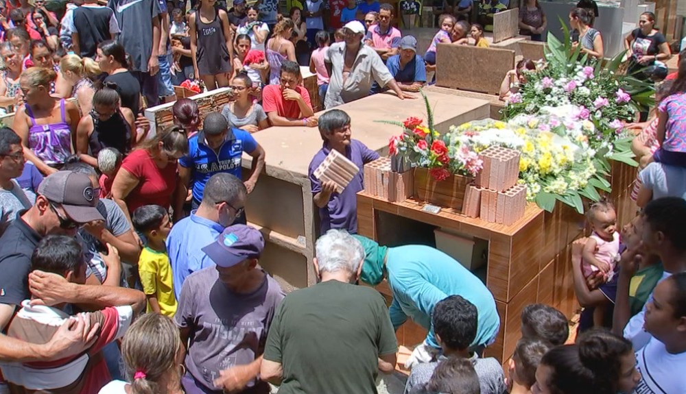 Emanuelle foi enterrada sob forte comoção no cemitério de Chavantes — Foto: Reprodução/TV TEM