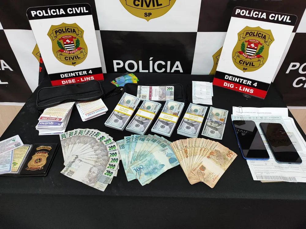 Cédulas de dinheiro falso foram encontradas com dupla de golpistas, em Lins (SP) — Foto: Polícia Civil/Divulgação
