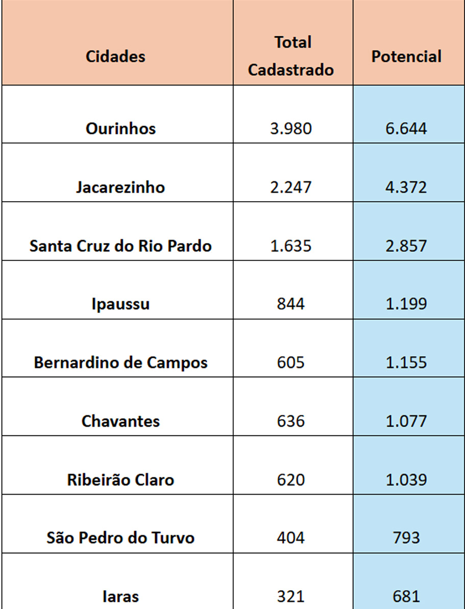 Confira os números de clientes cadastrados da Tarifa Social nas cidades atendidas pela CPFL Santa Cruz na região de Ourinhos (dados de junho de 2024):
