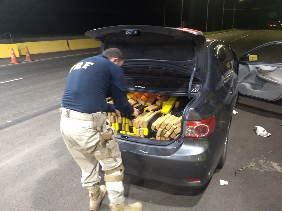 Drogas em Jandaia do Sul foram encontradas no porta malas de um carro — Foto: PRF/Divulgação