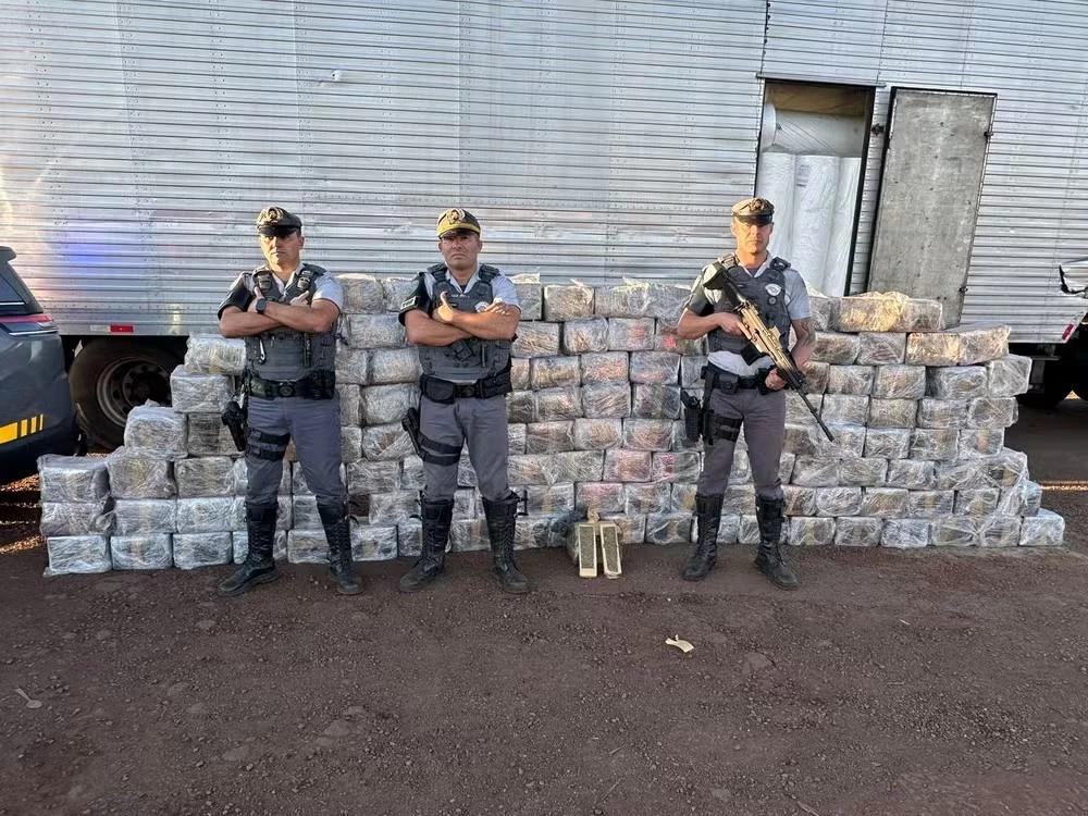 Policiais do Tático Ostensivo Rodoviário (TOR) apreenderam mais de uma tonelada de maconha na tarde desta sexta-feira (4), na Rodovia Raposo Tavares (SP-270), em Itaí (SP). A droga estava escondida em meio a uma carga de rolos de tecido transportada por um caminhão com placas estrangeiras.