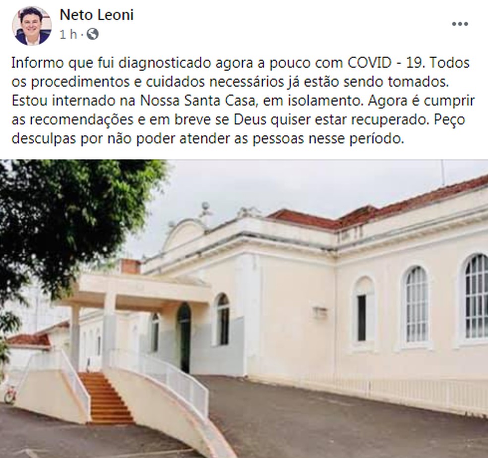 O prefeito de Bariri (SP) (180 km de Ourinhos), Neto Leoni (PSDB), informou nesta sexta-feira (2) que está internado na Santa Casa com diagnóstico positivo para Covid-19.