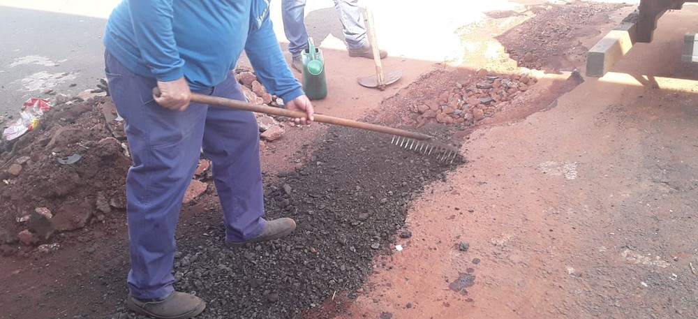Funcionários da prefeitura taparam o buraco na manhã desta quarta-feira (16) em São Pedro do Turvo — Foto: Prefeitura de São Pedro do Turvo/Divulgação