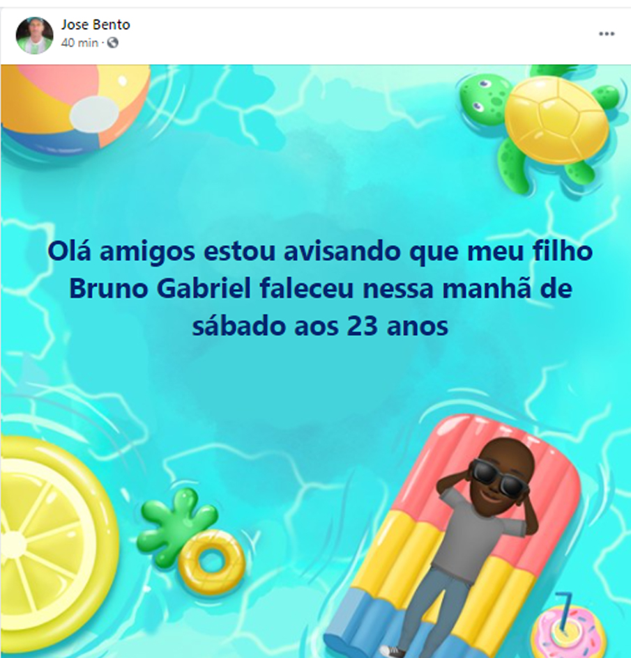 Faleceu neste sábado, 5, o jovem Bruno Gabriel de Jesus Bento de 23 anos, de Canitar, que lutava contra a Lemp, uma doença desmielinizante causada pela reativação do vírus John Cunningham (VJC). Em abril o Passando a Régua fez uma matéria para divulgar uma campanha que a família fazia para custear o tratamento médico. Através de uma vaquinha on-line, foi possível levantar quase R$8 mil. Confira o aviso postado pelo pai do jovem, José Bento: