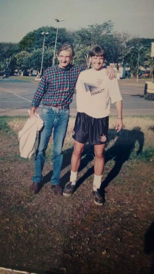 Rodrigo com o pai nas categorias de base do Corinthians (Foto: Reprodução)