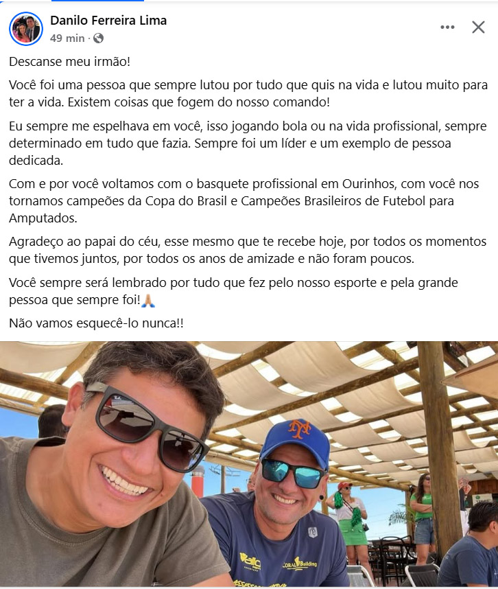 "Rodrigo foi um líder, um exemplo de dedicação e um amigo de todas as horas. Graças a ele, conquistamos títulos e trouxemos orgulho para Ourinhos. Seu legado permanecerá vivo em cada conquista esportiva e na memória de todos que o conheceram."