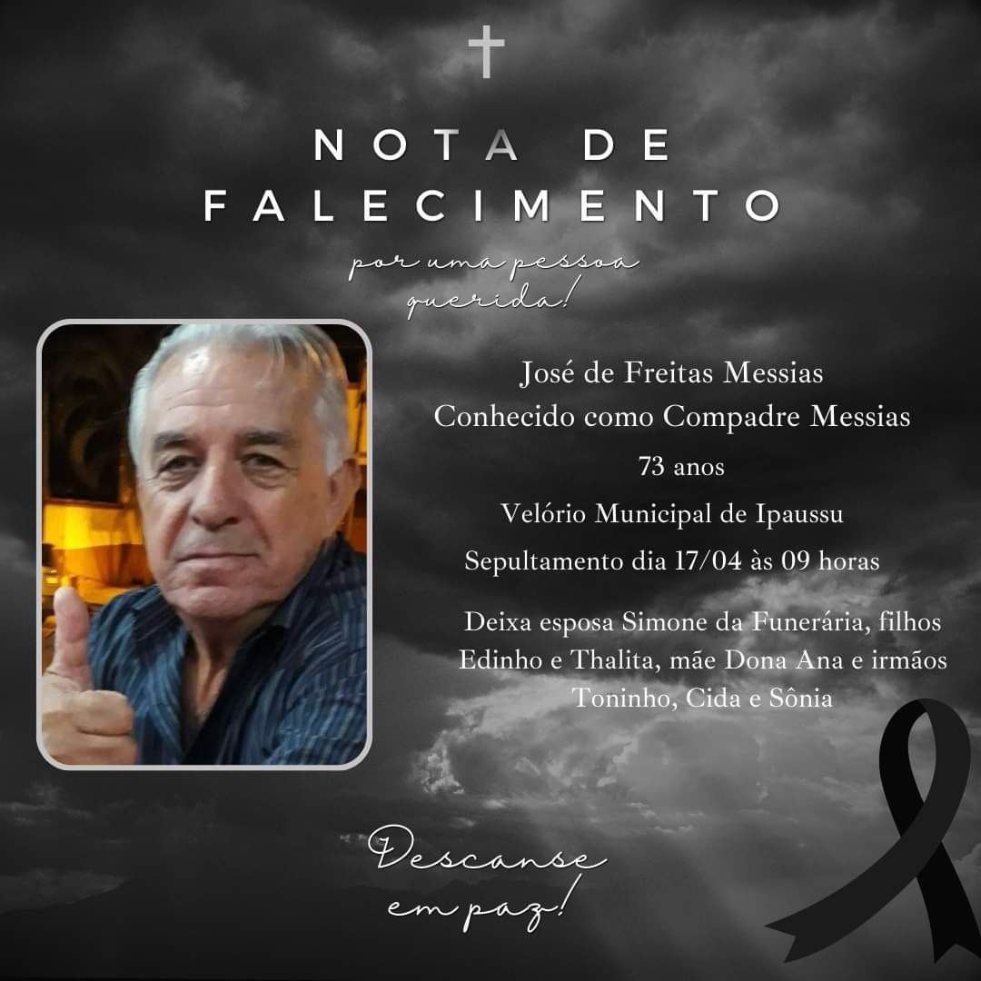 A comunidade radiofônica e festiva da região lamenta profundamente o falecimento de José de Freitas Messias, amplamente conhecido como Compadre Messias, ocorrido nesta terça-feira (16), na cidade de Ipaussu (SP). Aos 73 anos de idade, Compadre Messias deixa uma marca indelével em sua trajetória como radialista e animador de eventos.