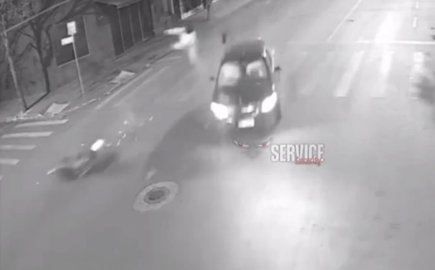 Com a força do impacto, a mulher foi arremessada a vários metros de distância. Um vídeo do acidente foi divulgado pela empresa de monitoramento Service Security.