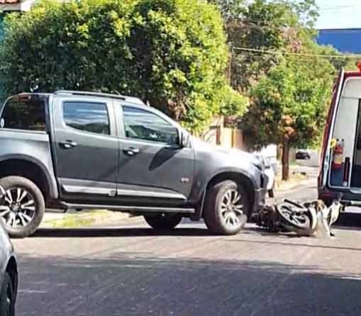 Uma motociclista ficou ferida na tarde desta sexta-feira (11) após se envolver em uma colisão com uma caminhonete na Rua Angelo Peruci, na região da Boa Esperança, em Ourinhos (SP).