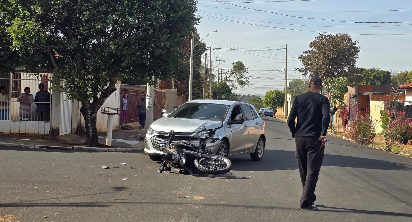 Um acidente de trânsito foi registrado na manhã deste sábado, 2 de agosto, no cruzamento da Rua Almiro Cardoso com a Rua São José, na Vila Santa Maria, região da Cohab, em Ourinhos. A colisão envolveu uma motocicleta e um carro.