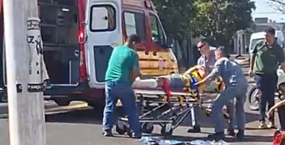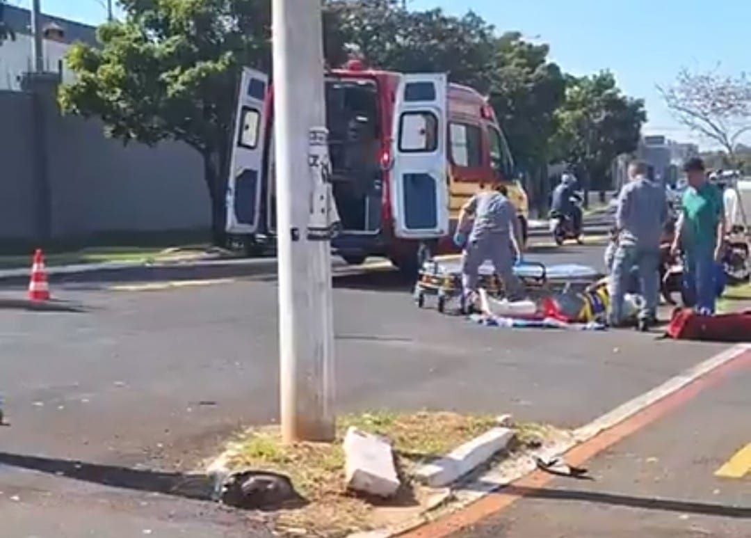 Um motociclista ficou ferido após uma forte colisão com um carro no início da tarde desta segunda-feira, 26, na Avenida Santino Brianezi, em Ourinhos (SP), no trecho entre o Jardim Santa Fé e o sentido Santos Dumont.