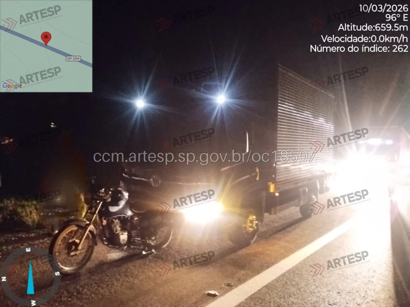 Segundo relato do motorista do caminhão envolvido, os veículos trafegavam no sentido oeste da rodovia quando a motocicleta, que estaria sem sinalização aparente, acabou colidindo na traseira do caminhão. Com o impacto, o motociclista caiu na pista.