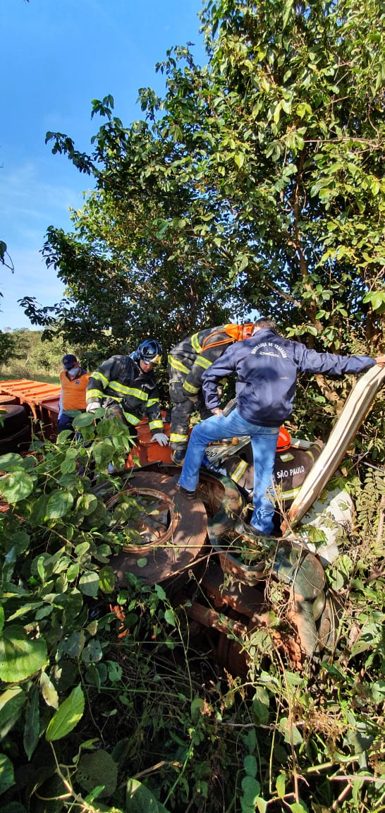 Um motorista de caminhão carregado de adubo, de 29 anos, ficou preso nas ferragens do veículo, após sofrer um grave acidente na manhã desta quarta-feira, 24, na estrada conhecida como “Vicinal Ponte Preta”, que faz ligação de Ourinhos ao município de Canitar.