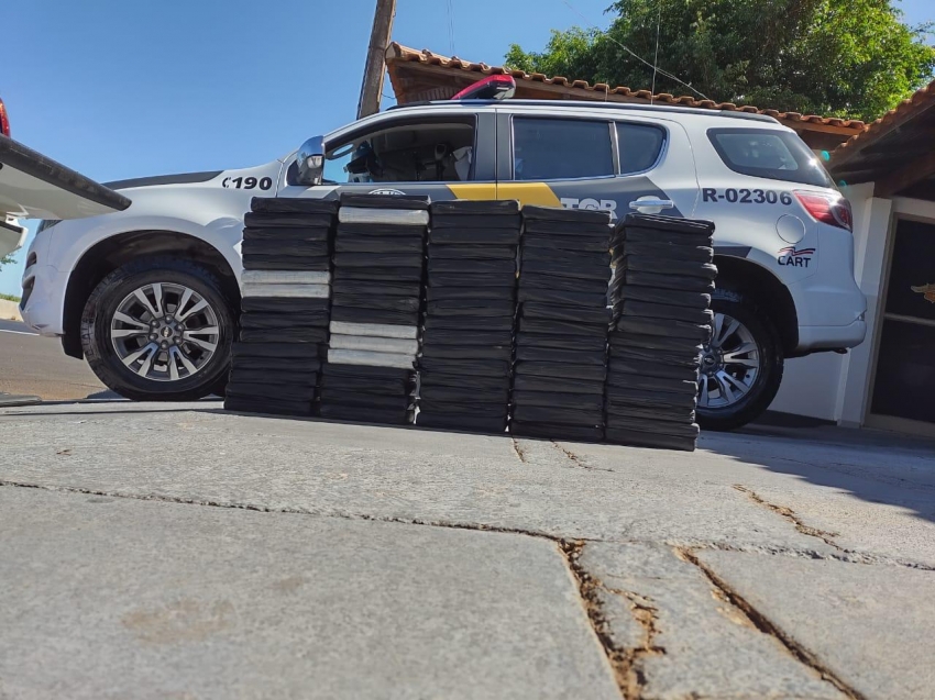 Durante a vistoria, os policiais localizaram 79 tijolos de cocaína, pesando aproximadamente 90 quilos, no assoalho embaixo do banco traseiro da caminhonete.