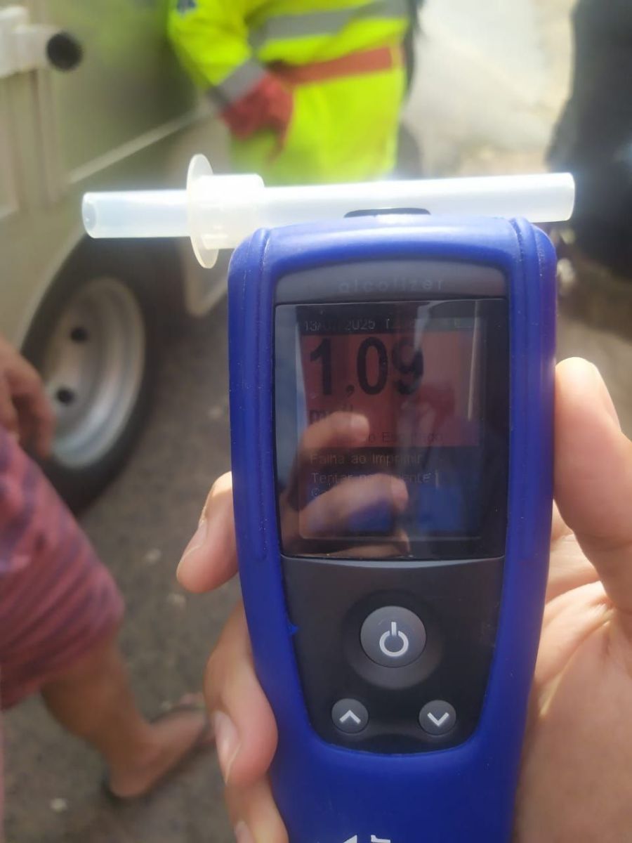 Foi realizado o teste do etilômetro, cujo resultado confirmou a concentração de álcool no sangue de 1,09 mg por litro de ar expelido, indicando embriaguez. Além disso, a equipe da concessionária enviou um vídeo que mostra o caminhoneiro passando pelo km 150, da BR-153 às 11h21, realizando manobras perigosas, como invadir a faixa no sentido contrário, colocando em risco a segurança viária.