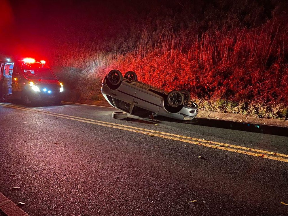 Um carro capotou na rodovia Engenheiro Thomaz Magalhães, em Piraju (SP) (59 km de Ourinhos), na noite deste sábado (28), por volta das 22h.