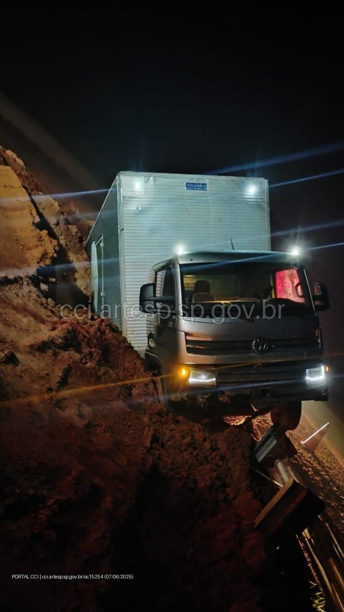 A perícia técnica esteve no local às 7h28 e liberou o veículo para remoção. Às 7h55, o proprietário do caminhão chegou ao ponto do acidente. No entanto, o guincho pesado designado para a operação constatou que seria necessário o desmonte da defensa metálica lateral para realizar o destombamento do caminhão, exigindo o apoio da equipe de conservação da rodovia.