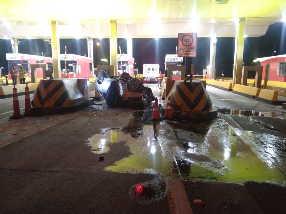 Segundo a Polícia Rodoviária, o homem bateu contra a barreira que divide as cabines de cobrança do pedágio, no quilômetro 453+590, e o veículo capotou.