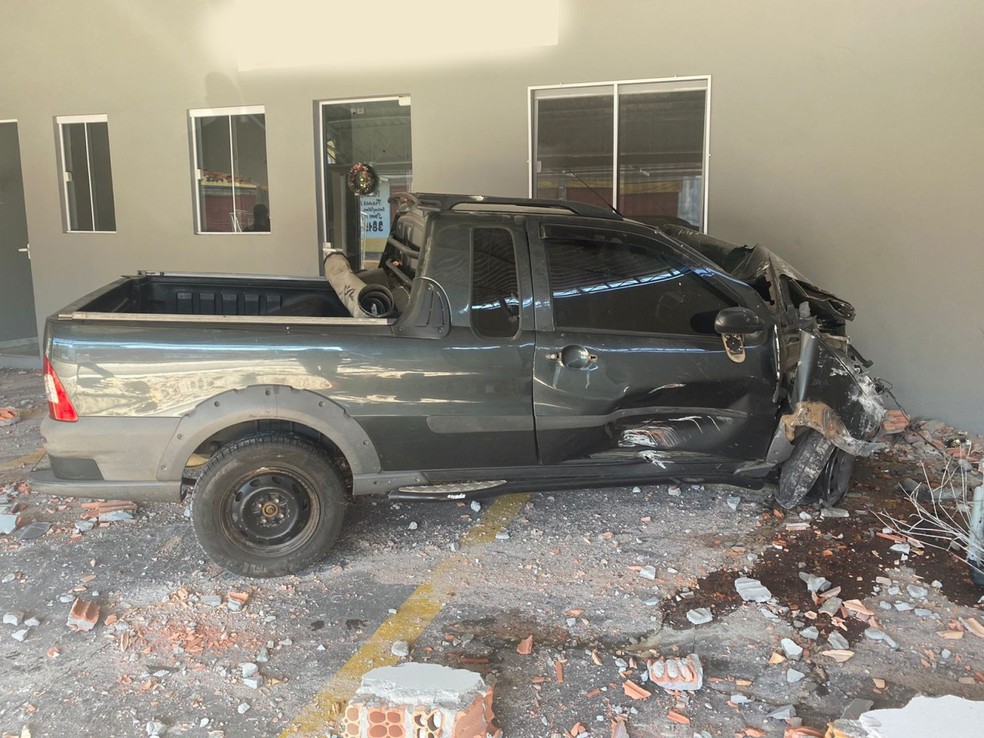 Um motorista perdeu o controle do carro e invadiu dois imóveis comerciais na Avenida Vital Brasil, na manhã deste domingo (21), em Botucatu (SP) (181 km de Ourinhos).