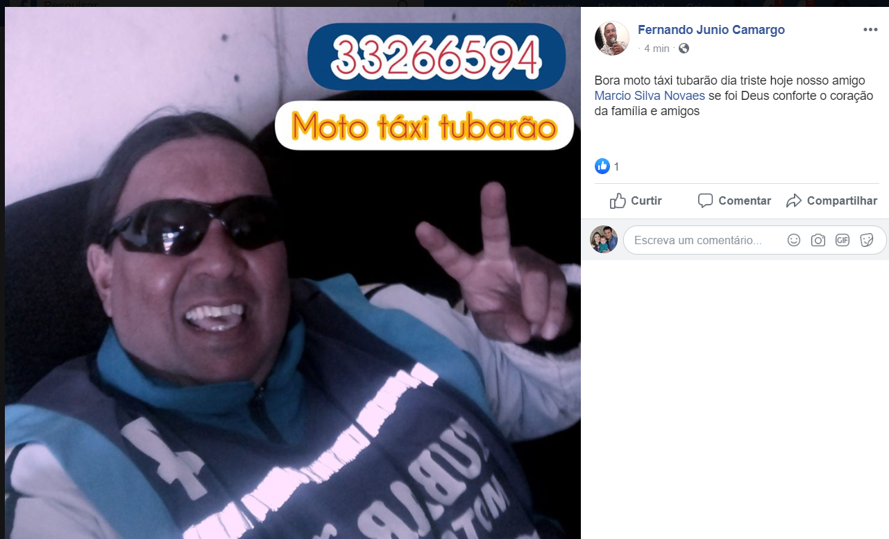 Marcio trabalhava de mototáxi em Ourinhos e sua página no Facebook recebeu homenagens de companheiros de profissão.
