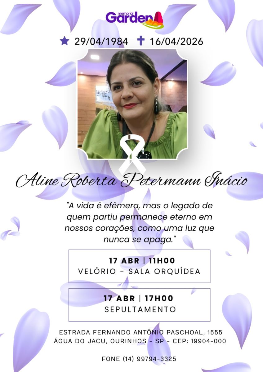 O velório está previsto para esta sexta-feira (17), a partir das 11h, no Memorial Garden, em Ourinhos. O sepultamento será realizado às 17h, no Cemitério Parque Ourinhos.