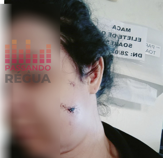 Mulher levou uma facada próximo ao olho esquerdo. No detalhe foto está espelhada, por isso dá a impressão que é o olho direto (Foto: Arquivo Pessoal)
