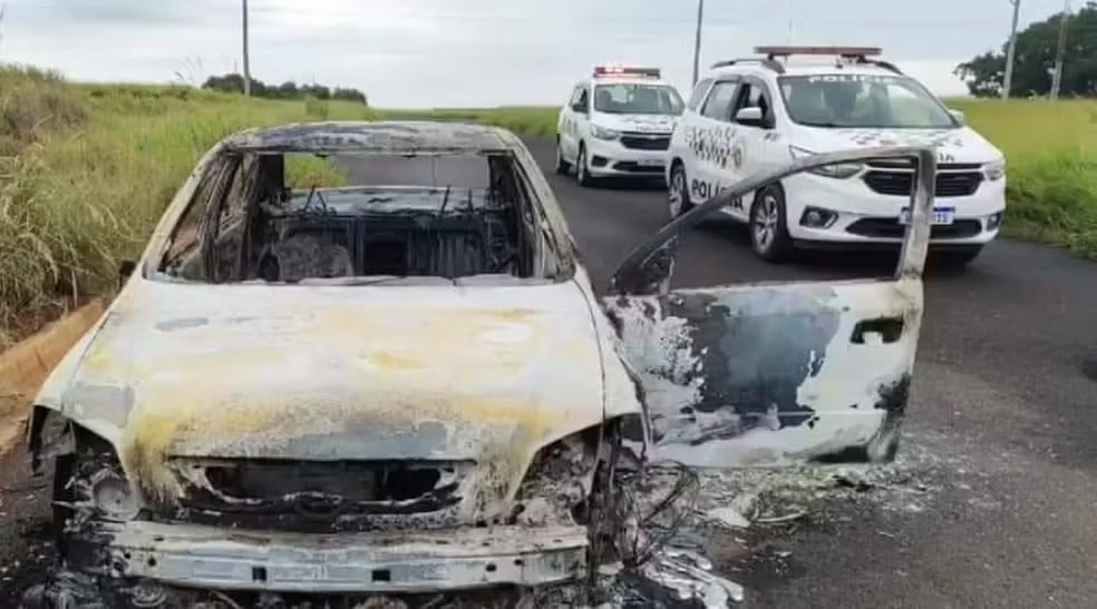 Segundo a Polícia Militar, uma equipe foi acionada para verificar um veículo incendiado no bairro Portal das Esmeradas, próximo a uma área de mata.