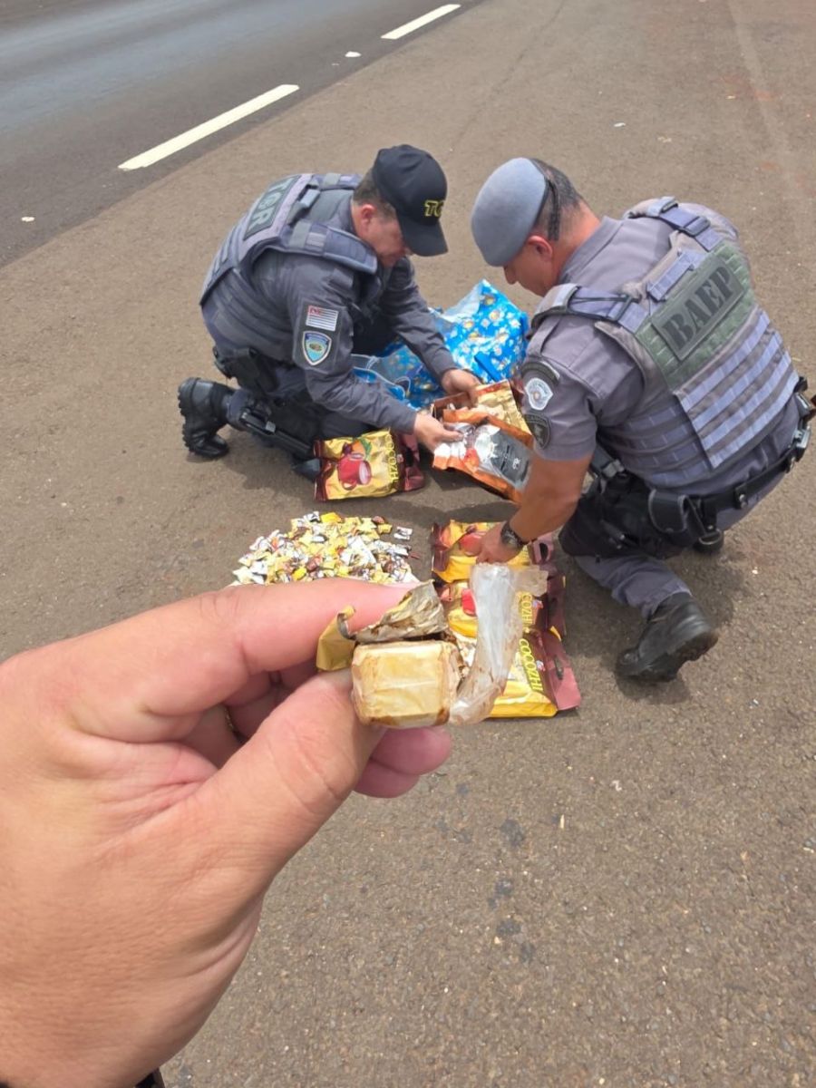 A ocorrência foi registrada por volta das 11h45, durante abordagem a um ônibus fretado que fazia o itinerário Corumbá (MS) – São Paulo (SP). Em apoio à fiscalização, a cadela policial Zara, do grupamento K9, realizou busca no salão de passageiros e no bagageiro do veículo.