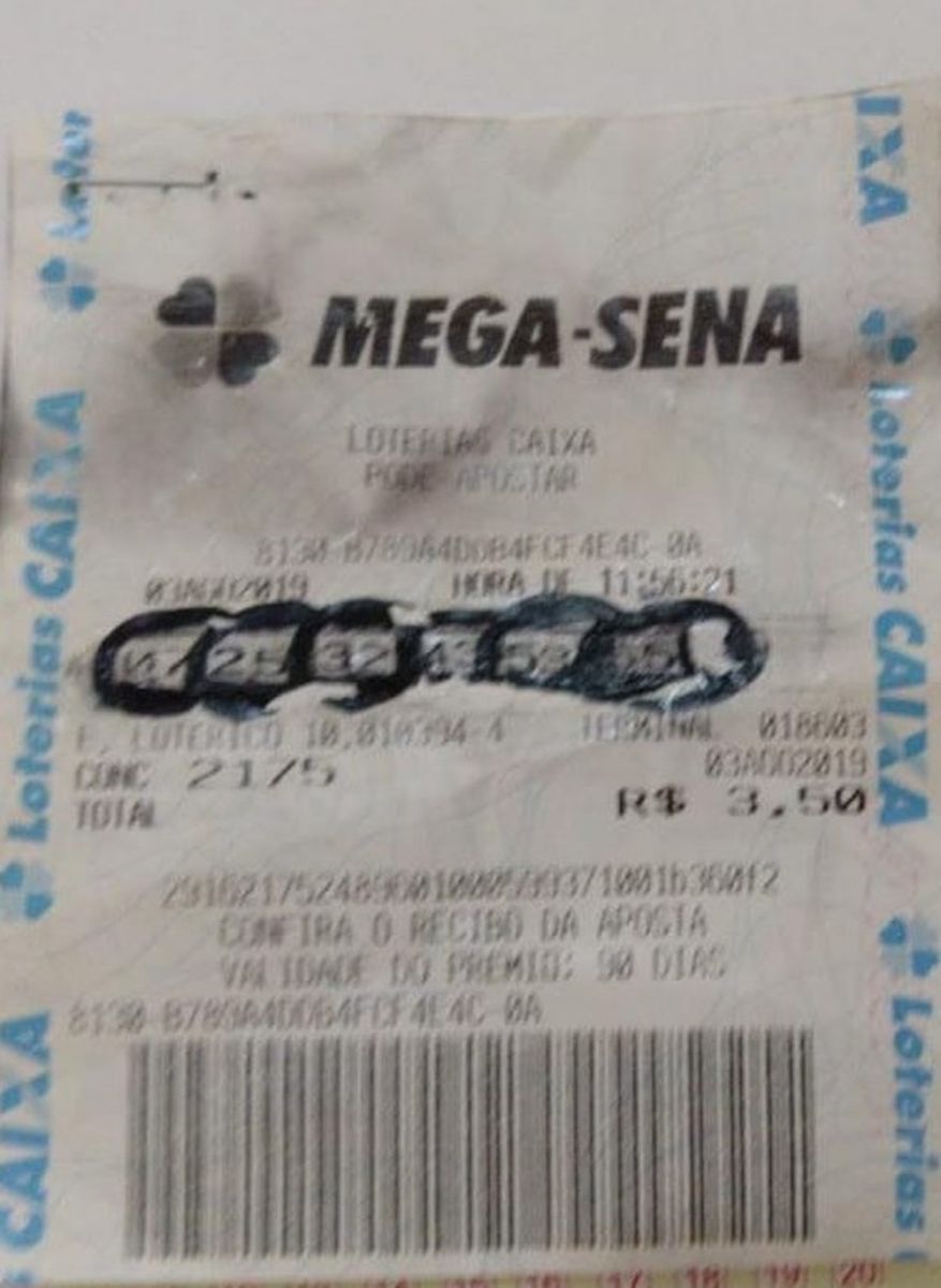 Com o bilhete em mãos, a dona do estabelecimento notou a falsificação 'grotesca' e chamou os policiais. De acordo com a polícia, a mulher recortou os números e colou no bilhete que apresentou.