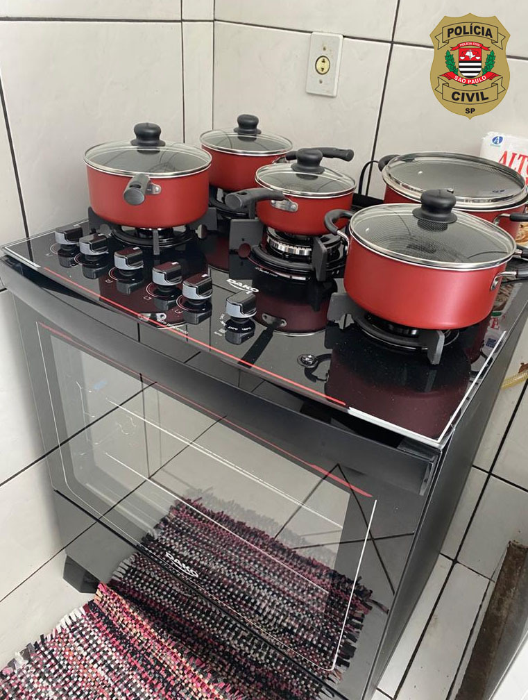 Nesta manhã, foi dado cumprimento aos mandados de prisão temporária e busca e apreensão, sendo recuperados uma série de objetos que envolvem sofá, guarda-roupas, fogão, utensílios de cozinha, jogo de talheres e panelas, dois televisores, um de 65 polegadas e outro de 55 polegadas, além outros objetos.