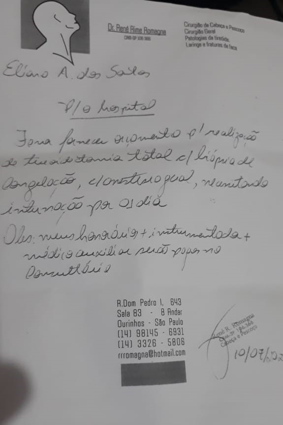 Ainda segundo Eliana, que trabalha como operadora em supermercado em Ourinhos, ela demora cinco meses para o nível de hormônio entrar dentro do aceitável para cirurgia, que é realizada apenas por um médico especialista na cidade e se for esperar o SUS (Sistema Único de Saúde), para realizar a cirurgia, terá que ficar muito tempo na fila aguardando uma vaga. Por este motivo ela faz um apelo para quem puder ajudar. Com qualquer valor.