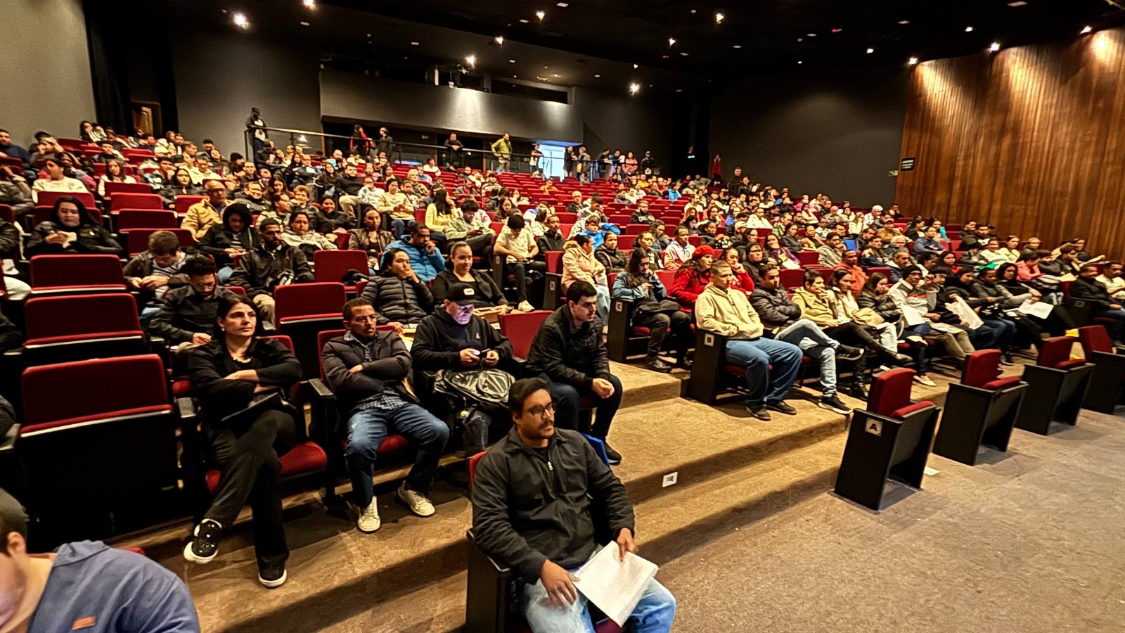A estrutura do Teatro Municipal permitiu a realização de até 8 entrevistas simultâneas, com currículos sendo recebidos diretamente no local e até mesmo disponibilizados para preenchimento, caso o candidato não tivesse um modelo impresso.