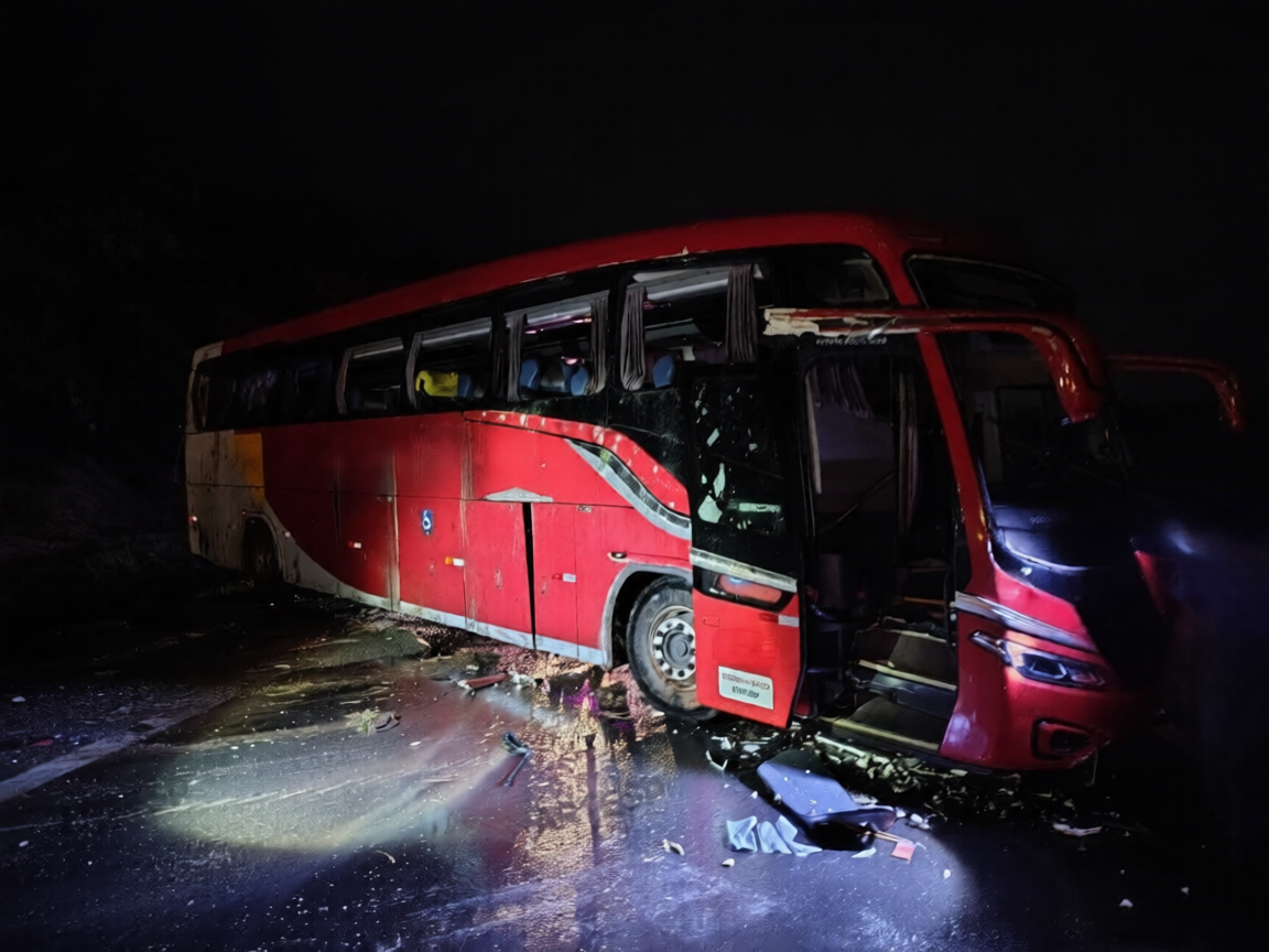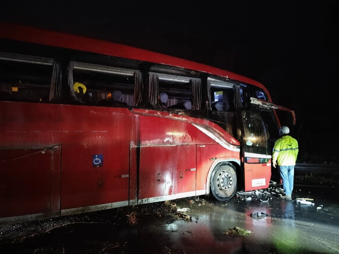 De acordo com a Polícia Rodoviária, o ônibus transportava 35 passageiros, além do motorista. Do total, a polícia informou que 13 ficaram feridos, sendo 12 com ferimentos leves e um com ferimentos graves. Todos os ocupantes do ônibus conseguiram sair do veículo.