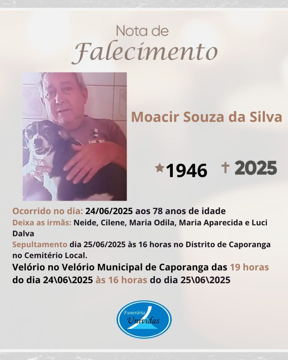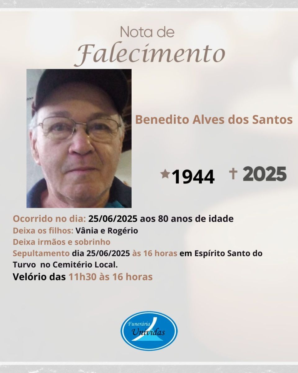 Residente na cidade, Antonio era conhecido entre familiares e amigos, que agora lamentam sua partida. A família enlutada comunicou o falecimento e agradece pelas manifestações de carinho e solidariedade neste momento de dor.