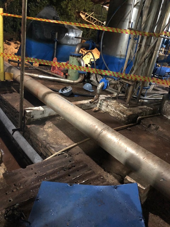 O incêndio foi controlado antes de atingir outras dependências da empresa e o local foi deixado em segurança. Até momento não há informações de mais feridos.