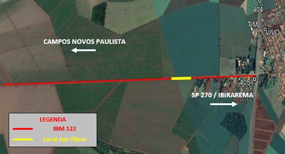 Nesta quarta-feira, 12, haverá interdição na IBM 122, rodovia vicinal que liga Ibirarema e Campos Novos Paulista à SP-270 – Rodovia Raposo Tavares. A manutenção de pavimento está programada no quilômetro 3+300.