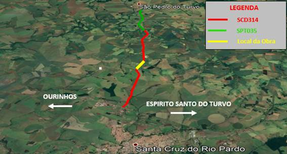 Em Santa Cruz do Rio Pardo, a SCD 314, que faz a ligação de São Pedro do Turvo à SP-327 e Santa Cruz do Rio Pardo, está na programação de obras de quinta-feira, 13. A fresagem e recomposição do pavimento ocorrerá no km 7+100.