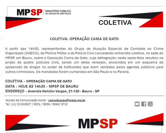 De acordo com informações divulgadas pela imprensa local, em Piraju (SP), quatro prisões foram realizadas.