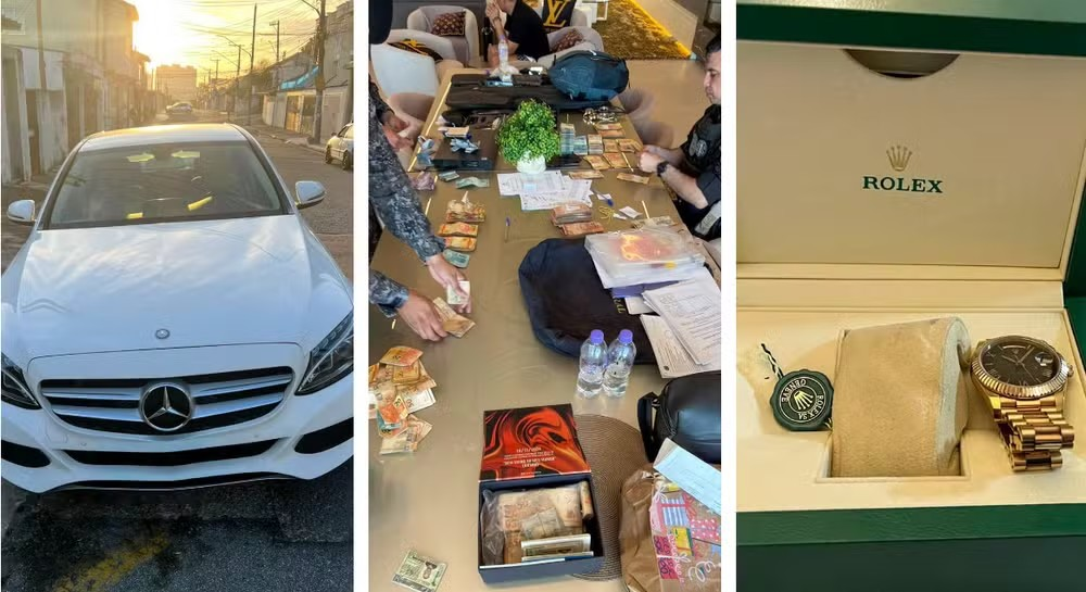 Carro de luxo, dinheiro e relógio Rolex apreendido em operação da PF contra funkeiros — Foto: Reprodução