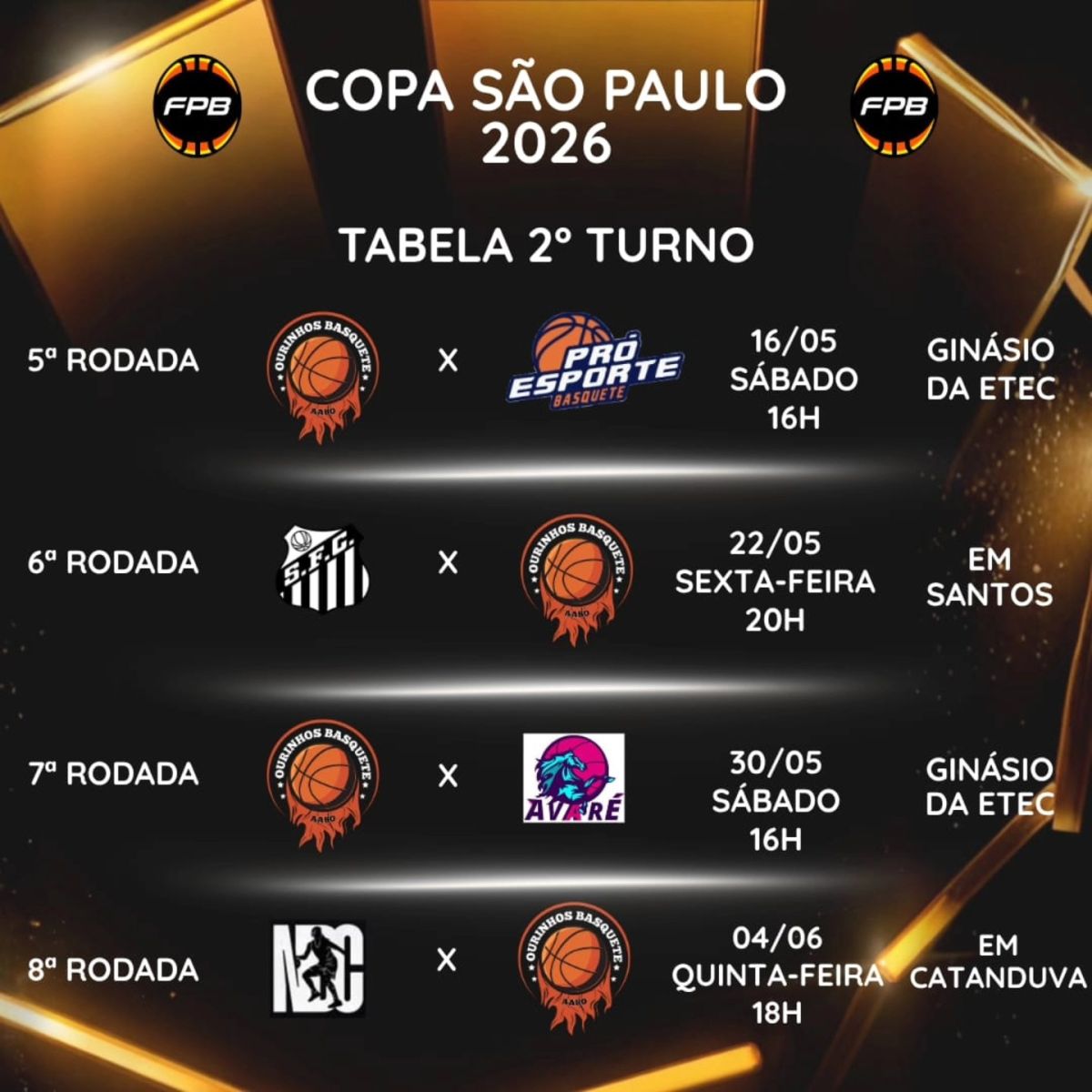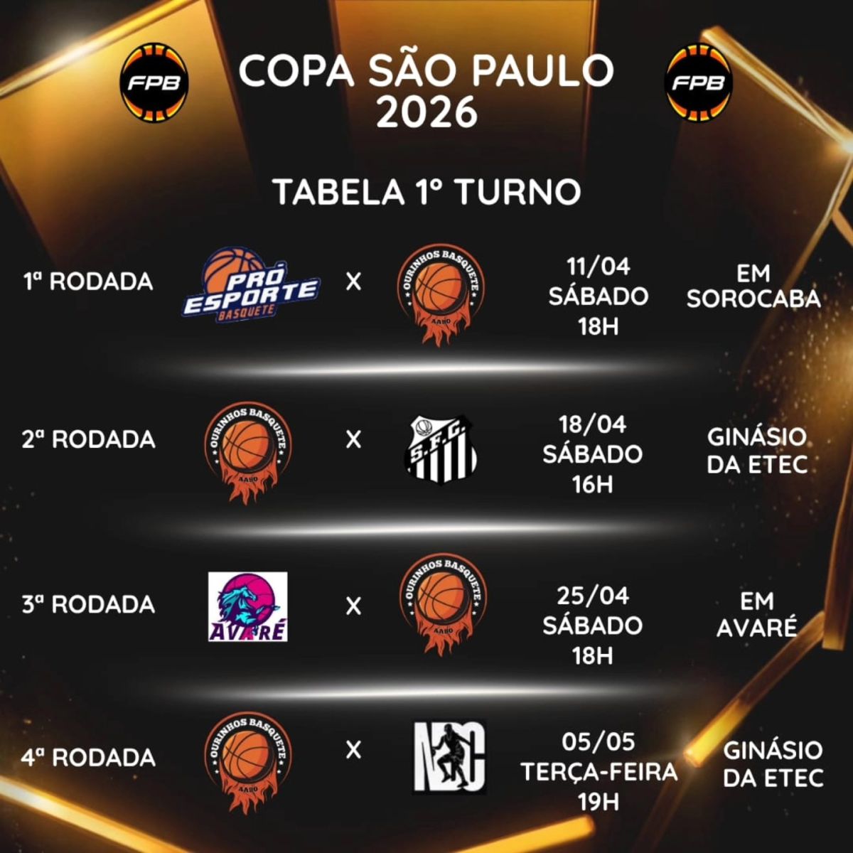Com o calendário oficial já definido pela Federação Paulista, o Ourinhos Basquete AABO inicia sua caminhada focado em evolução e competitividade, contando também com o apoio da torcida em mais uma importante competição estadual.