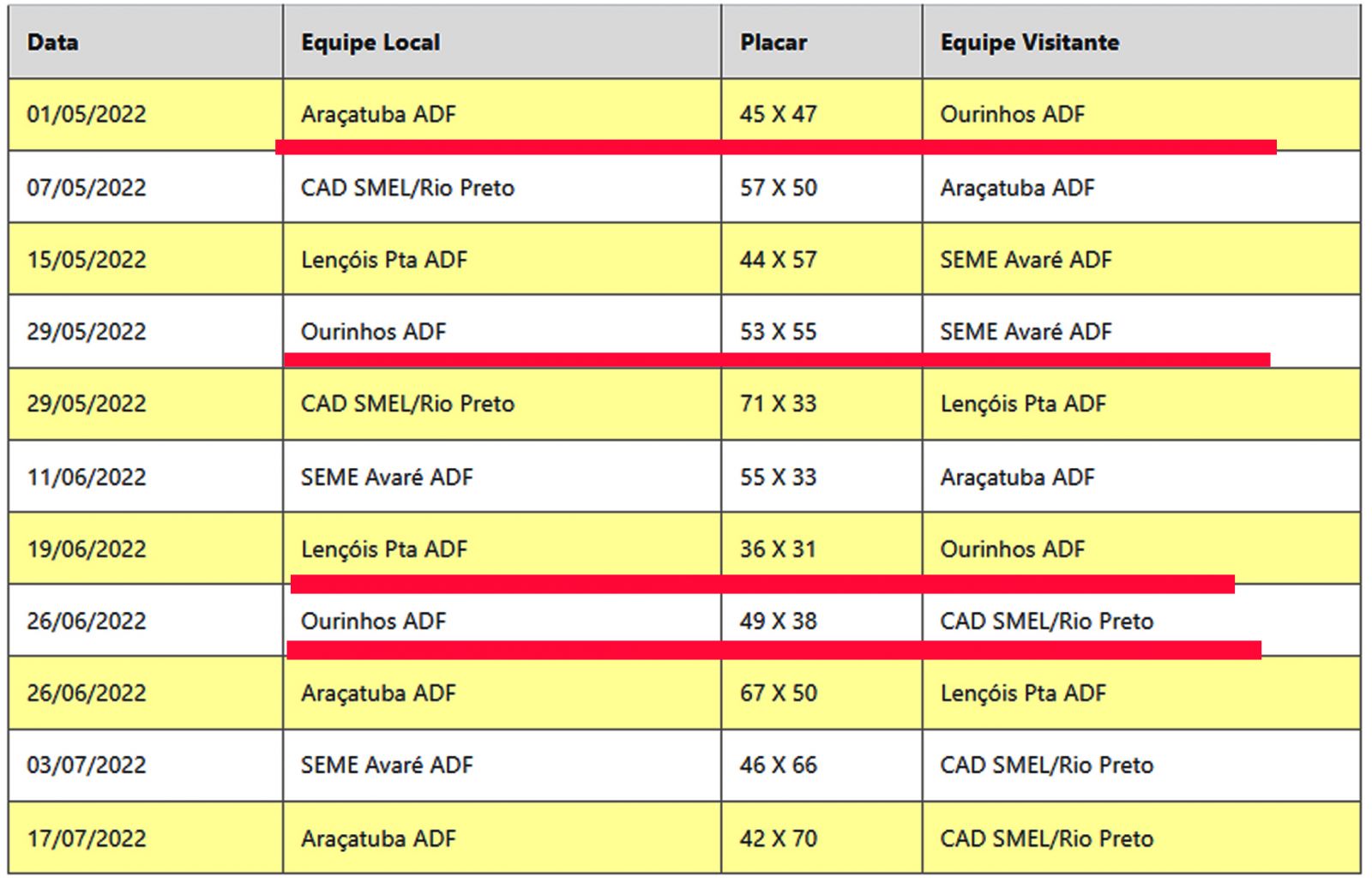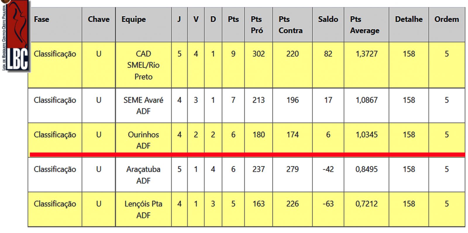 Ourinhos ocupa no momento a terceira colocação. Lembrando que classificam para a fase final as quatro melhores equipes, que se enfrentam em duelos semifinais: O primeiro colocado contra o quarto e segundo contra o terceiro. Depois será feita a final e disputa do terceiro lugar. A final deverá ser em quadra neutra.